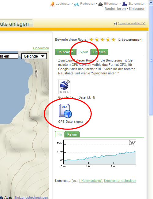 (Das Beispiel wird auf der Basis einer meiner Routen in Wandermap.net, erklärt.Öffnen und Speichern von GPX-Dateien