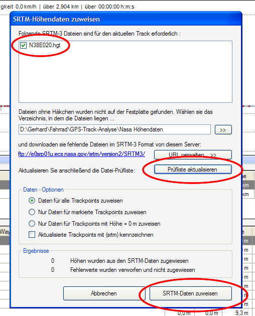 – Zum Abschluß noch auf “SRTM – Daten zuweisen” drücken.