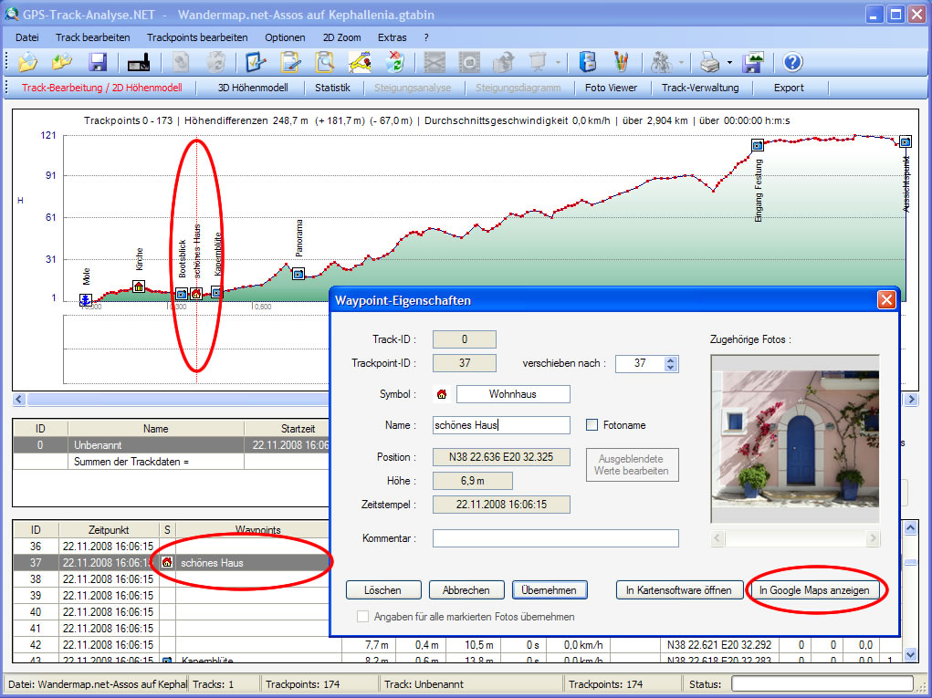 GPS-Track-Analyse ein hervorragendes kostenloses GPS-Daten-Auswertungsprogramm. Sehr gute Darstellungsmöglichkeiten.