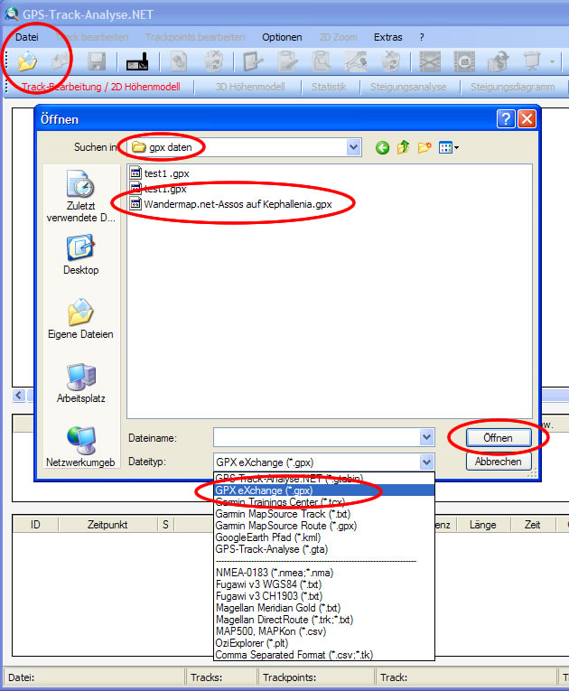 - Öffnen und Speichern von GPX-Dateien
