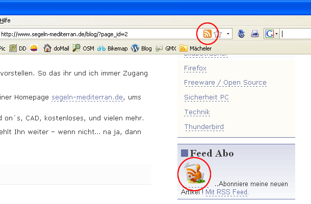 Zusätzlich werden bei Seitenbetreibern die Feeds anbieten, oft weiter Links mit unterschiedlichen Logos angezeigt – bei mir sieht so so aus.