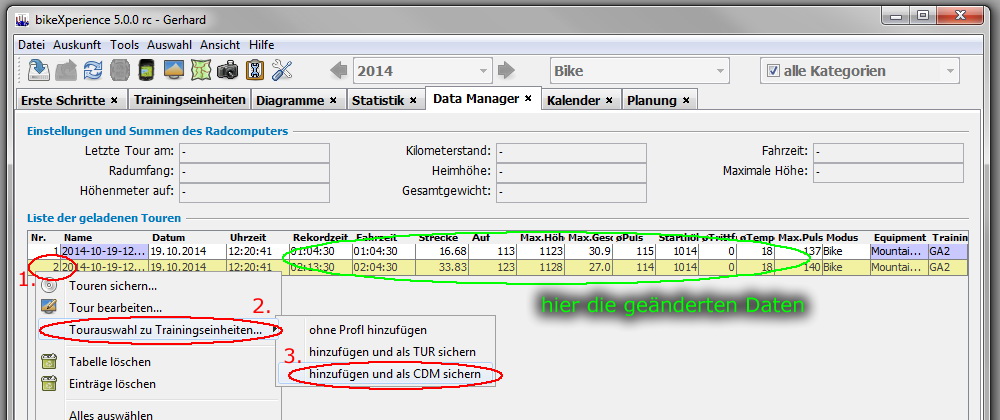 Mit BikeXperience Datensätze zusammenfügen geht schneller als man bei der Anleitung vermutet, einfach ausprobieren.