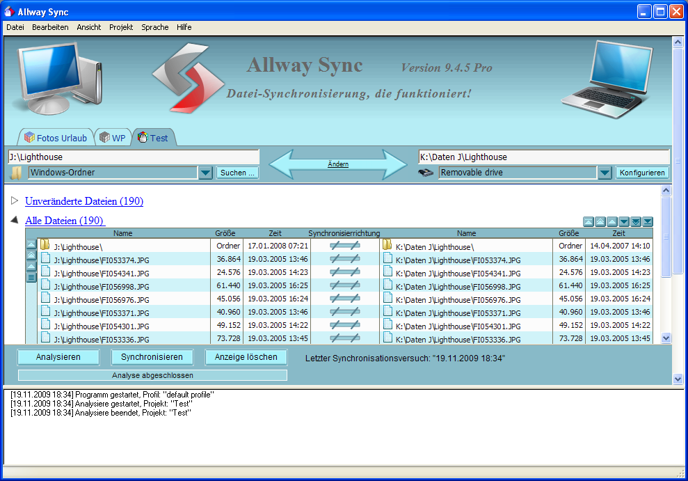 6. Fertig. Allway Sync, gleicht alle Ordner, Unterorder und Verzeichnisse ab, Legt diese auch an, wenn sie nicht vorhanden sind.