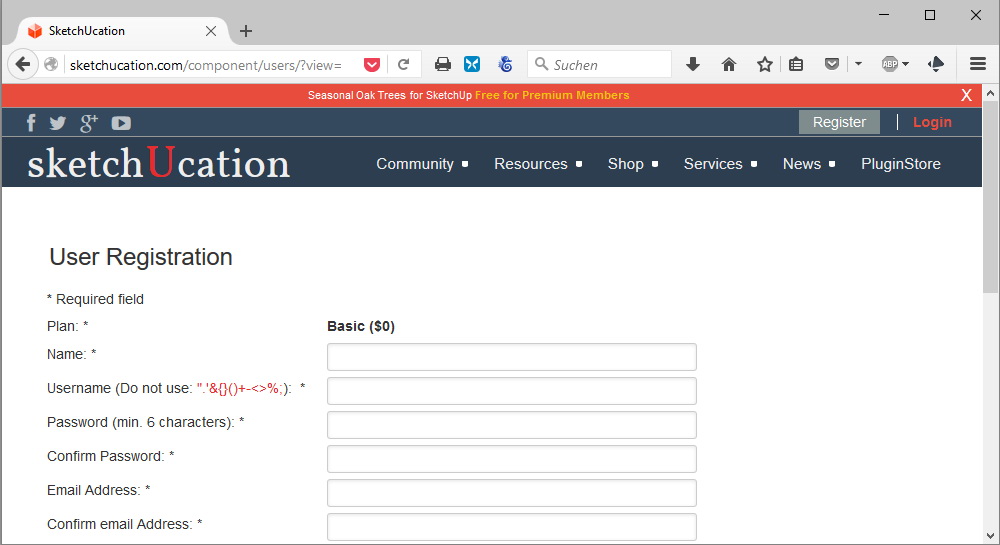 - Kostenlosen Accont bei http://sketchucation.com/register.php erstellen.